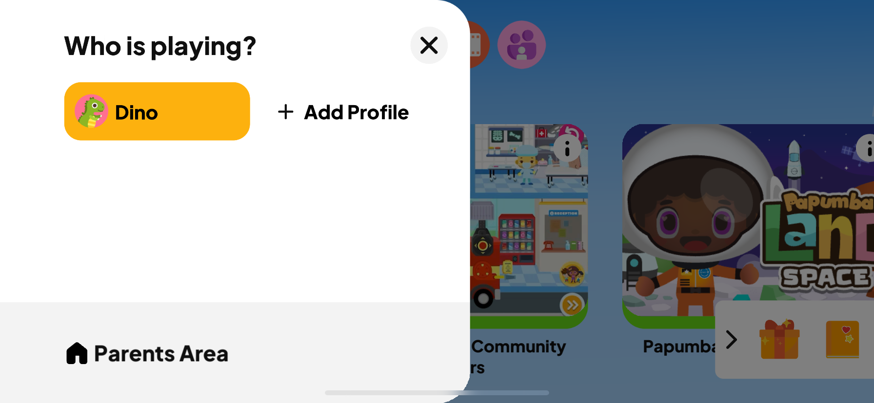 2. Abra a barra lateral e toque no Área de pais botão na parte inferior da tela.