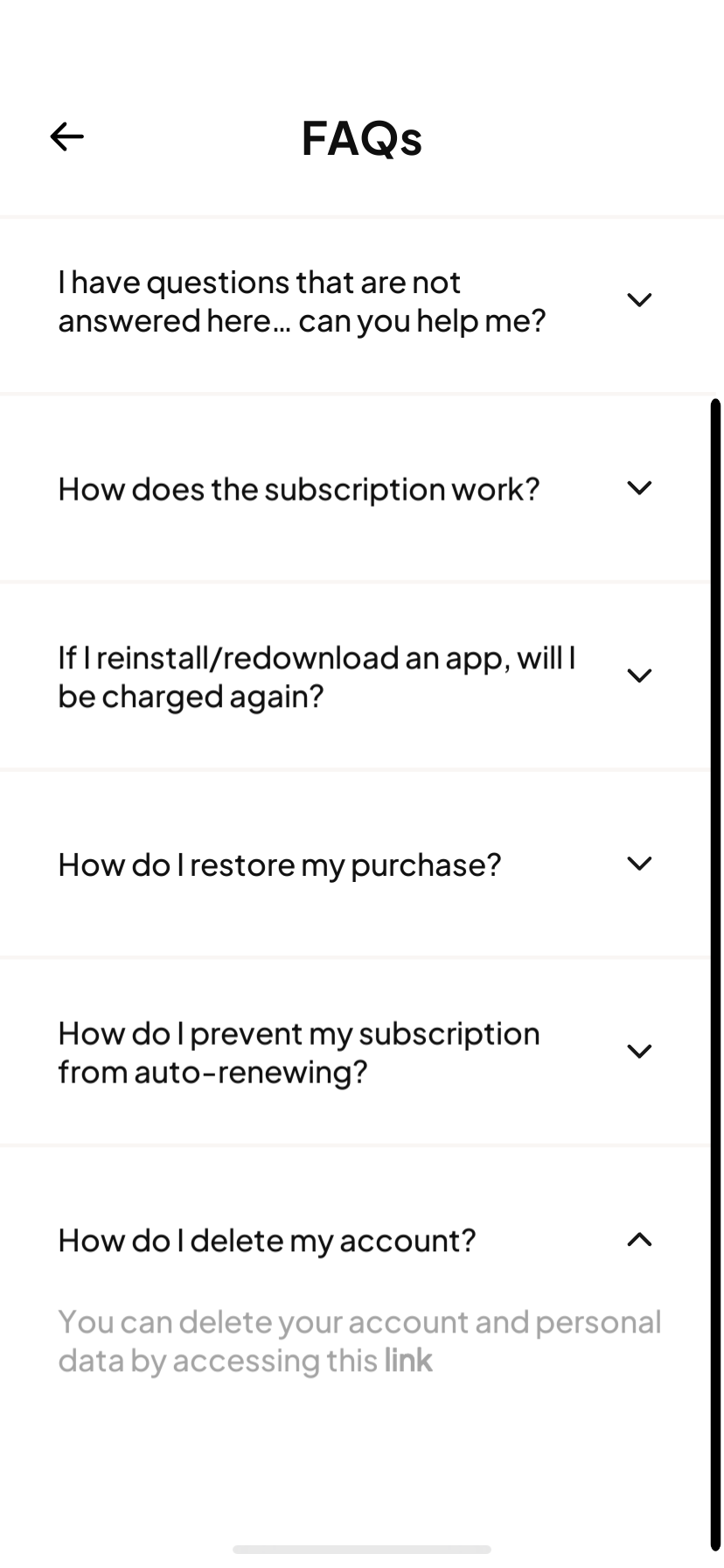 5. Abra a opção "Como excluo minha conta?" e toque no link que aparece dentro dela.